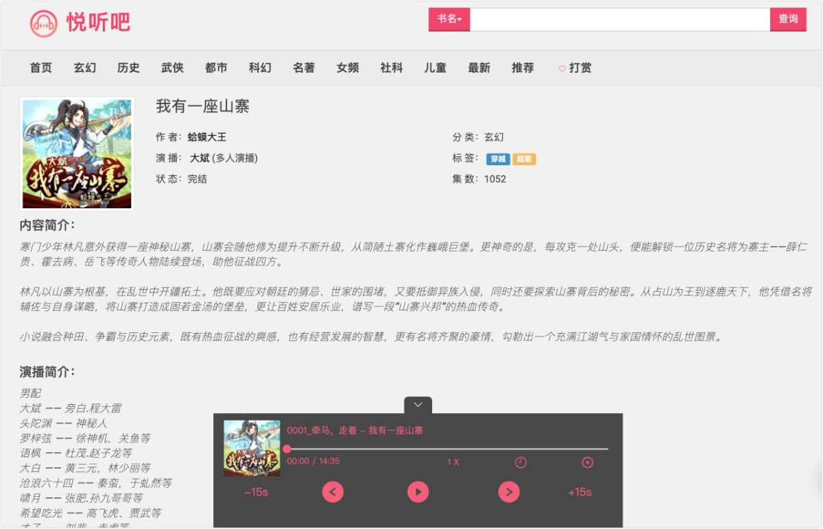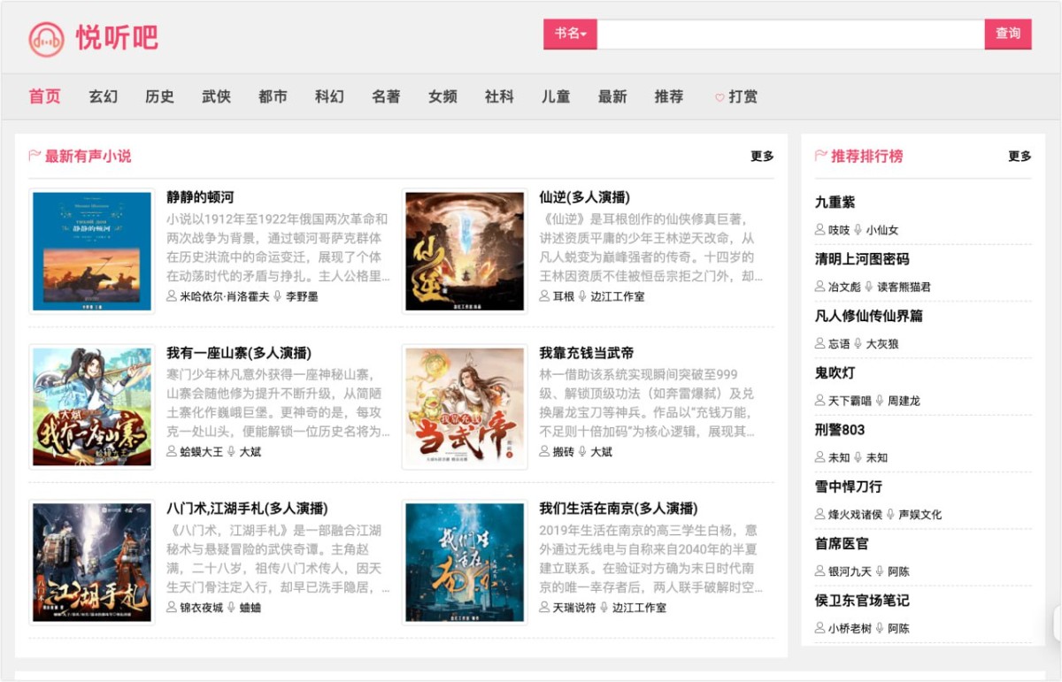 悦听吧,一个在线听书网站