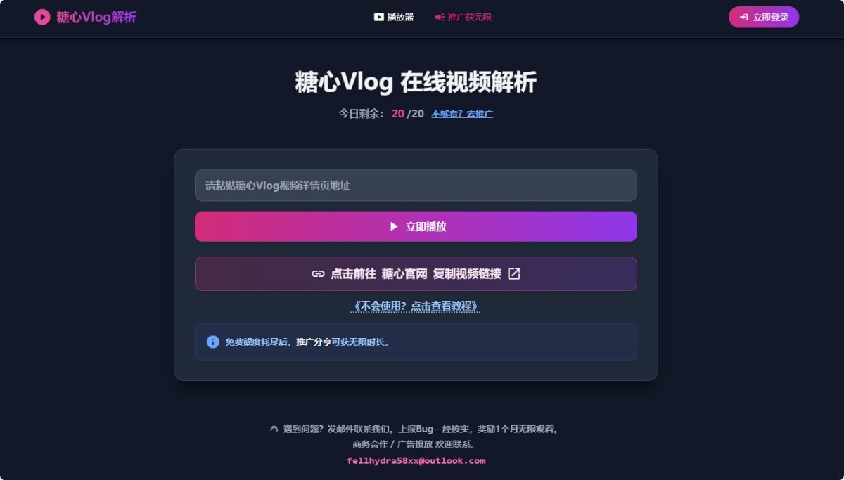 直接黏贴糖心VLOG视频详情页地址就可以解析播放。