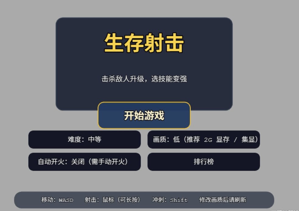 休闲小游戏 — 生存射击—打开浏览器就能玩